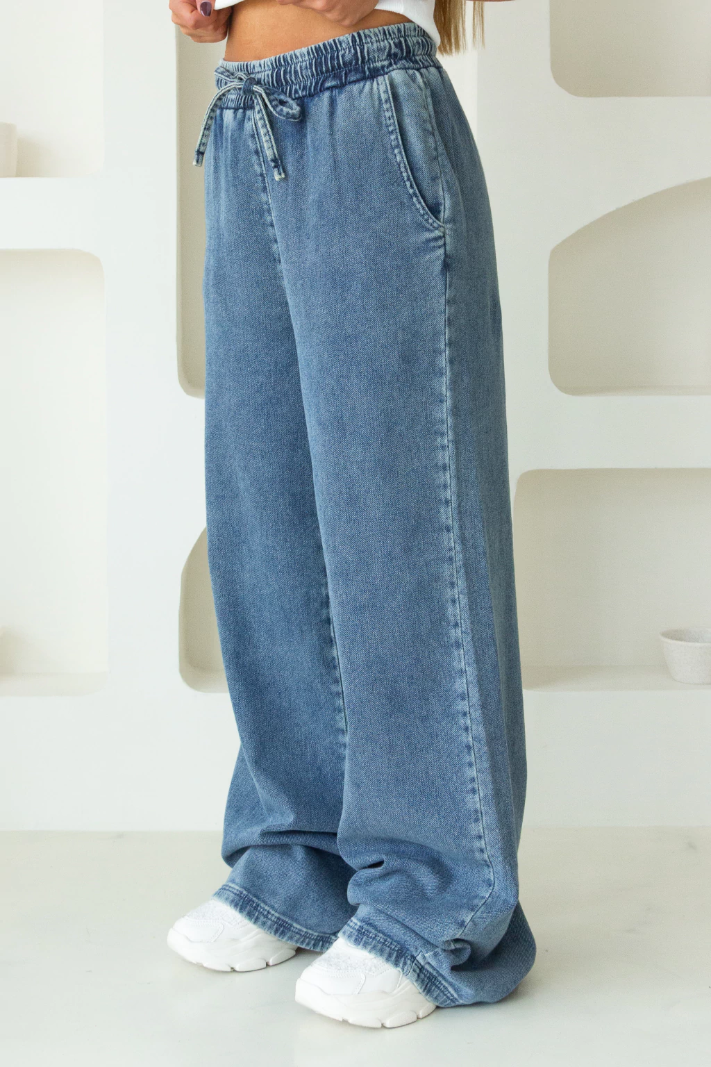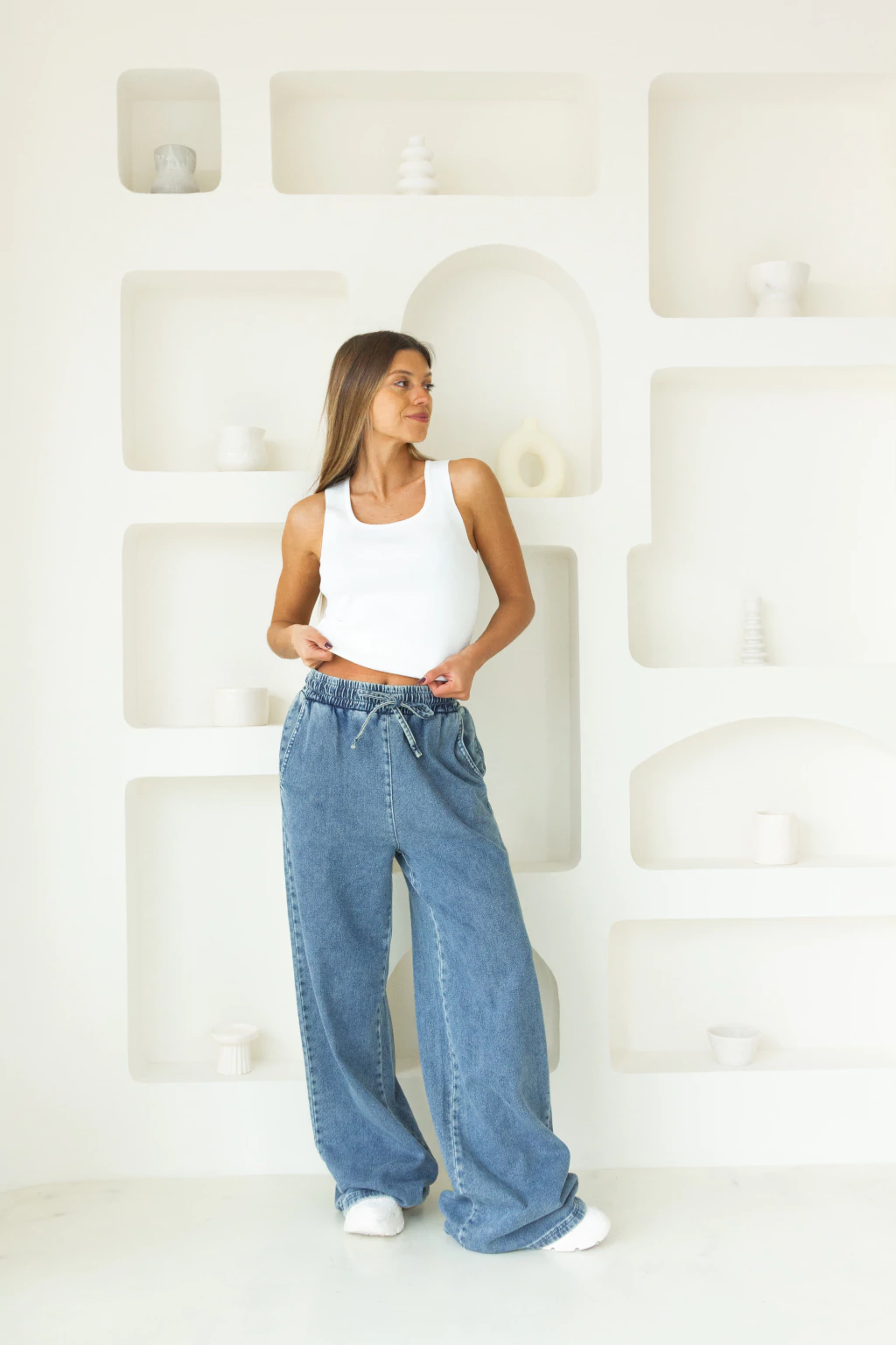 Descubrí el Pantalón CALATHEA, un jean recto con corte pijamero que combina comodidad y estilo con elegancia. Su cintura elástica y doble bolsillo brindan practicidad sin perder sofisticación.