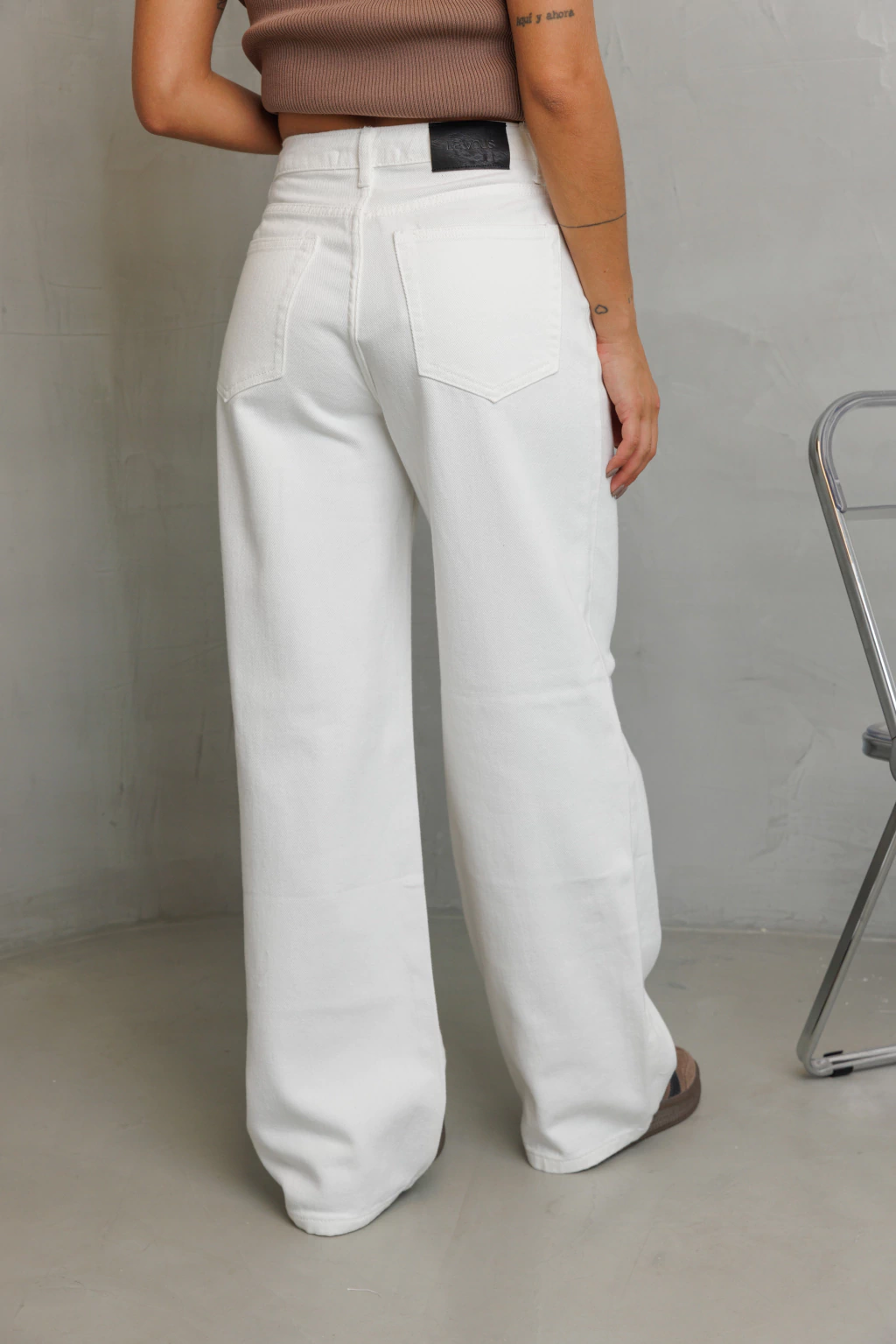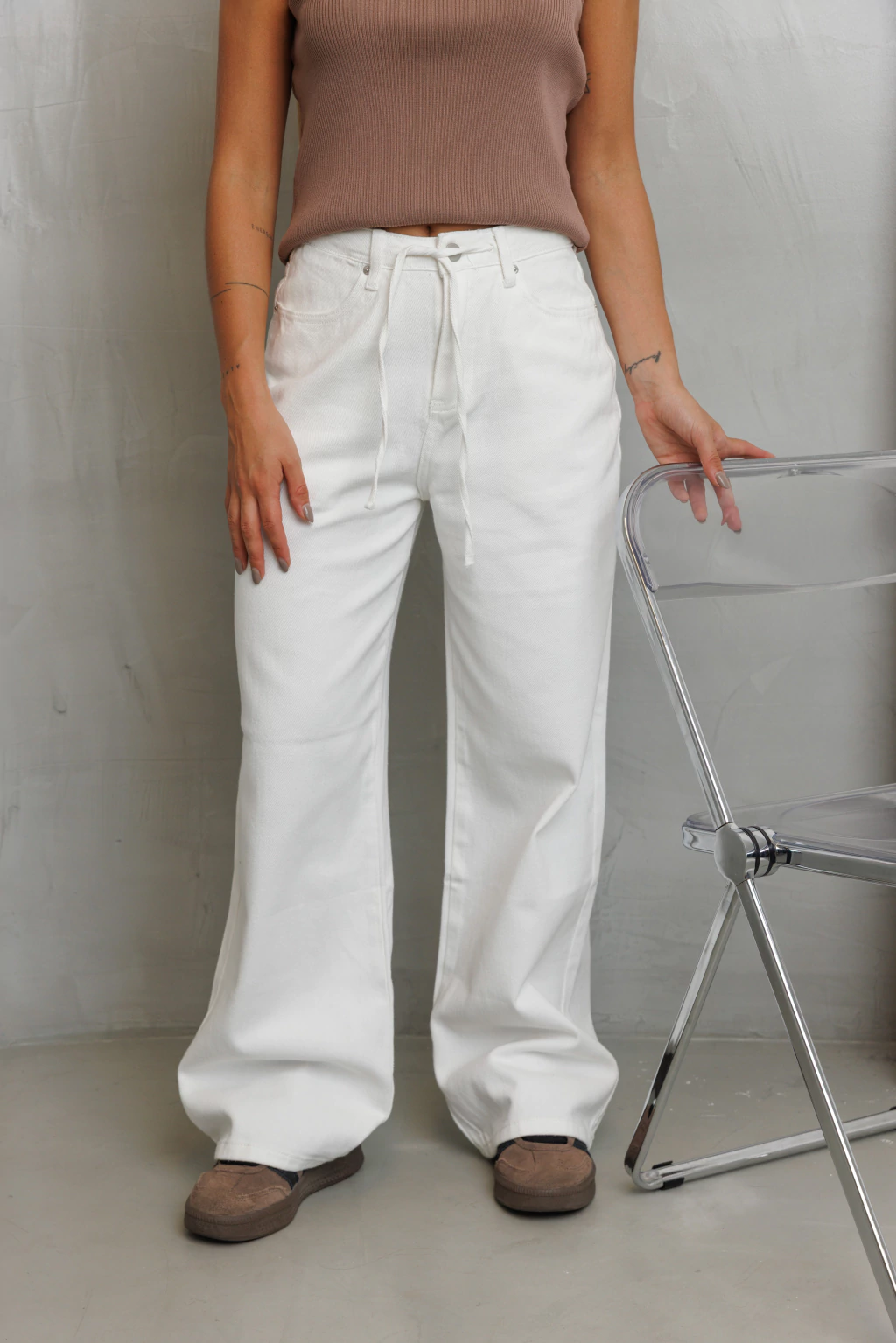 Sumá comodidad y estilo a tu look con este jean de tiro medio y corte wide leg, ideal para outfits relajados y cancheros. Su diseño cuenta con cordón en la cintura, que le da un toque moderno y permite un calce perfecto.