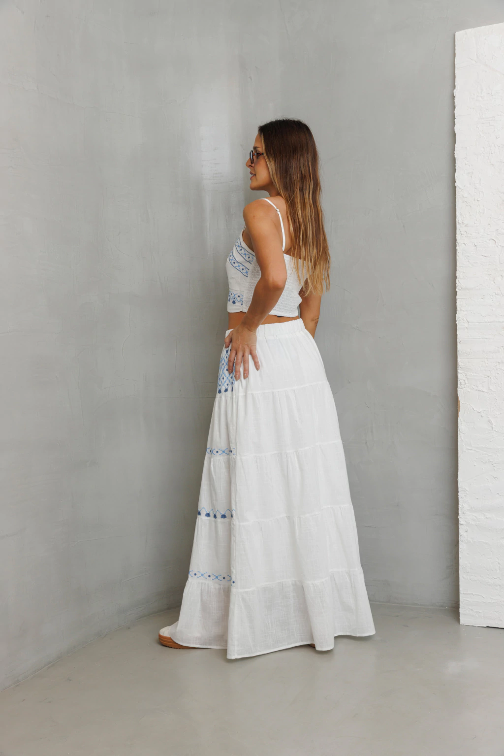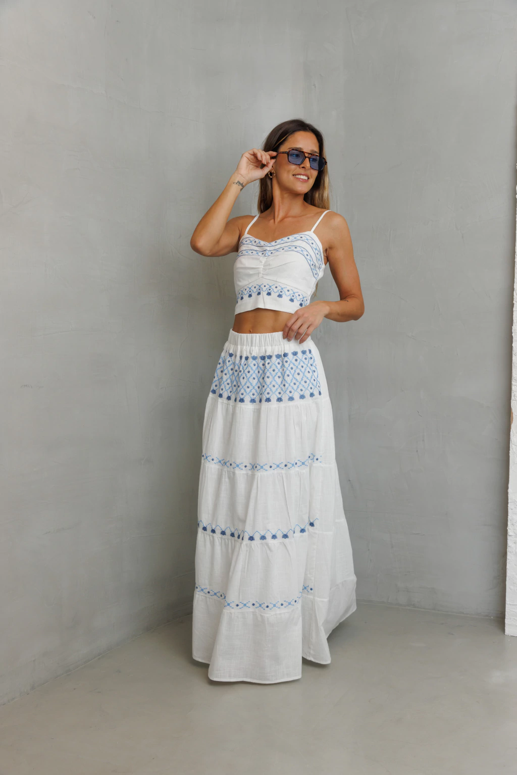 Un conjunto pensado para quienes aman los detalles. El Set Avestruz combina la frescura del lino con delicados bordados artesanales, logrando un look elegante y natural. Su top con tiras regulables y pollera con caída liviana hacen de este dúo una opción ideal para los días de verano o una salida especial. ?