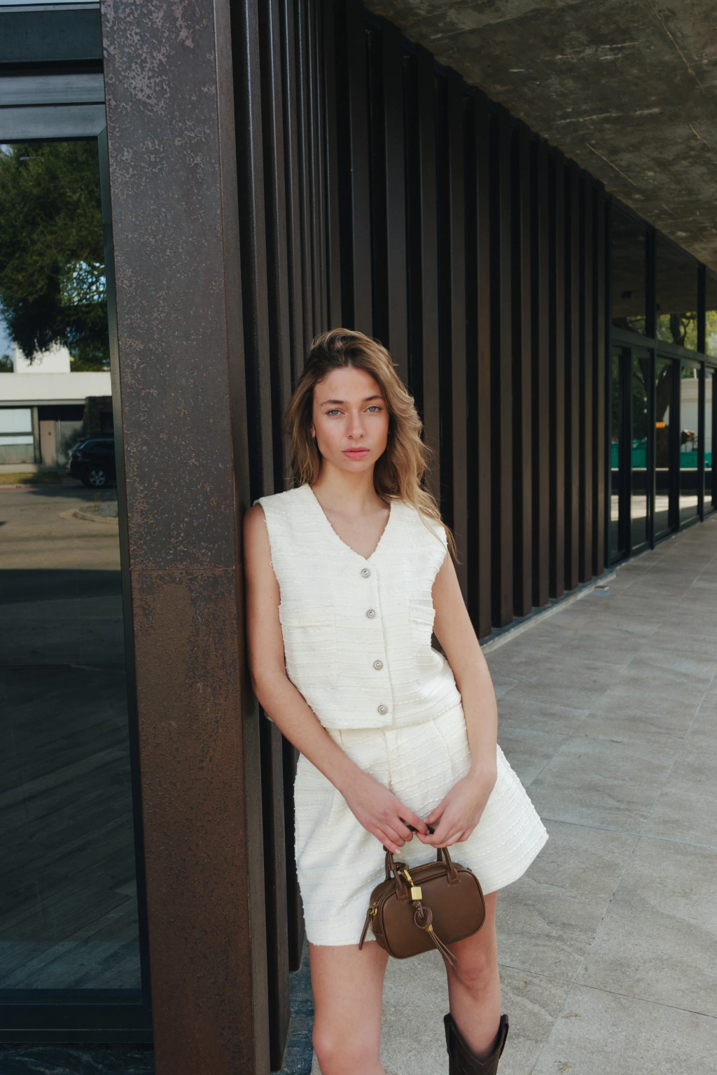 Descubrí la sofisticación del Set KENTIA , compuesto por un chaleco y short confeccionados en tela brocato de verano con delicado bordado y detalles en botón biju con hilo de lurex.